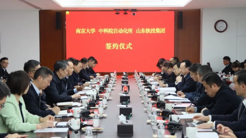 11月8日下午,山東鐵投集團(tuán)與南京大學(xué)、中科院自動(dòng)化研究所在集團(tuán)總部大樓簽署合作協(xié)議并座談交流。南京大學(xué)黨委書(shū)記、中國(guó)科學(xué)院院士譚鐵牛,黨委常委、校長(zhǎng)助理、學(xué)校辦公室主任李斌,山東省科技廳黨組成員、省創(chuàng)新發(fā)展研究院黨組書(shū)記、院長(zhǎng)劉峰,中科院自動(dòng)化研究所黨委委員、副所長(zhǎng)呂品,山東鐵投集團(tuán)黨委書(shū)記、董事長(zhǎng)王衛(wèi)中,黨委副書(shū)記、總經(jīng)理高立平,黨委委員、副總經(jīng)理?xiàng)羁∪②w春雷出席活動(dòng)。集團(tuán)黨委副書(shū)記樂(lè)江華主持。
