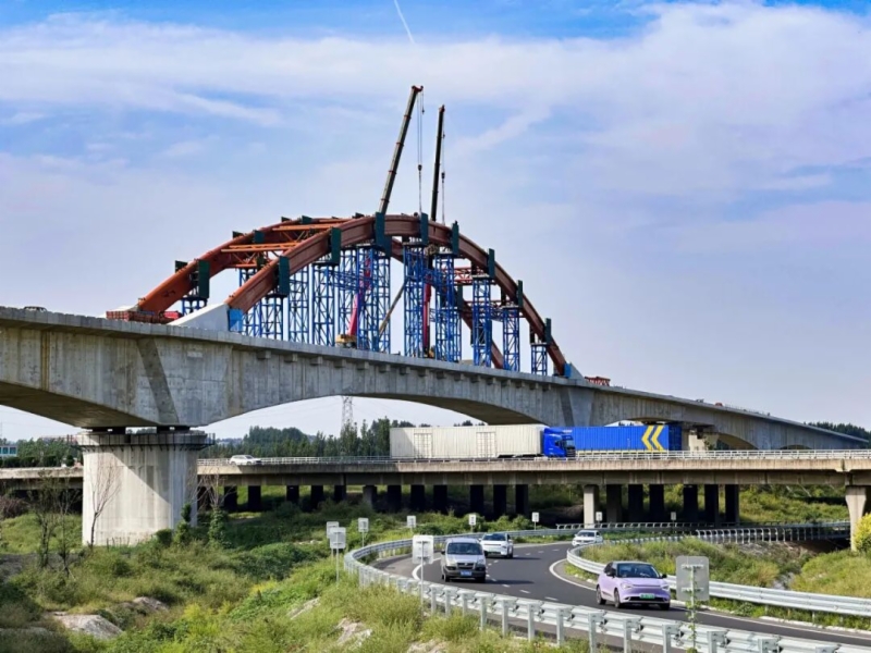 9月10日,濟(jì)濱高鐵濟(jì)南東特大橋上跨青銀高速連續(xù)梁鋼構(gòu)拱橋拱肋順利合龍,標(biāo)志著濟(jì)濱高鐵全線最大跨度連續(xù)梁拱肋安裝合龍,為后續(xù)架梁與鋪軌施工提供了作業(yè)通道。