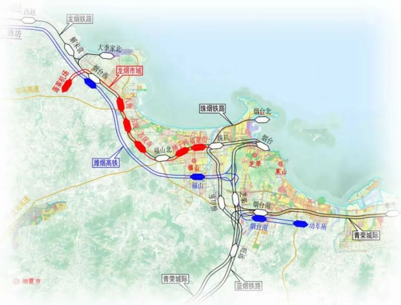 龍煙鐵路市域化改造工程位于煙臺市境內(nèi),是山東省重點(diǎn)鐵路交通項(xiàng)目。工程利用煙臺市內(nèi)既有龍煙鐵路、藍(lán)煙鐵路富余能力進(jìn)行市域化改造,東起煙臺站,西至煙臺西站,通過新建蓬萊國際機(jī)場支線在煙臺西站接軌,連通蓬萊機(jī)場站,線路全長46.6公里,其中:新建橋梁10.52公里,隧道9.04公里,橋隧占比41.6%。全線新建福萊山、柳子河、古現(xiàn)南、古現(xiàn)、八角、蓬萊機(jī)場6座車站,改建煙臺、珠璣、福山北、煙臺西4座車站,項(xiàng)目可研批復(fù)總投資75億元,2024年9月底開工建設(shè),計(jì)劃2027年9月底建成通車。通車后,將以開行市域化公交列車的形式,串聯(lián)起煙臺站、煙臺西站、蓬萊機(jī)場站等交通樞紐,是山東省首條市域鐵路。