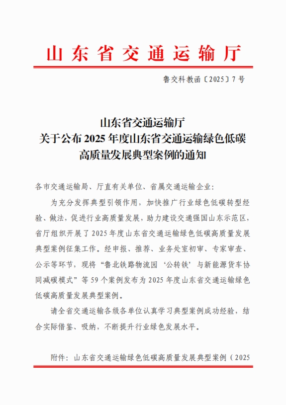 近日,省交通運輸廳發(fā)布2025年度山東省交通運輸綠色低碳高質(zhì)量發(fā)展典型案例,山東鐵投集團濟青高鐵公司《基于路域固廢的高速鐵路混凝土設(shè)計與應(yīng)用典型案例》入選。